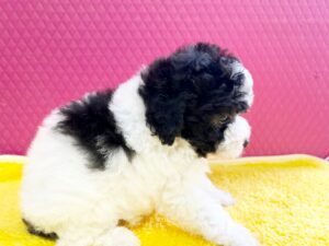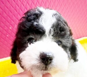 パピー特有の陽気でフレンドリーな性格で、兄妹のパピー達と一緒に社会性を学んでいます。